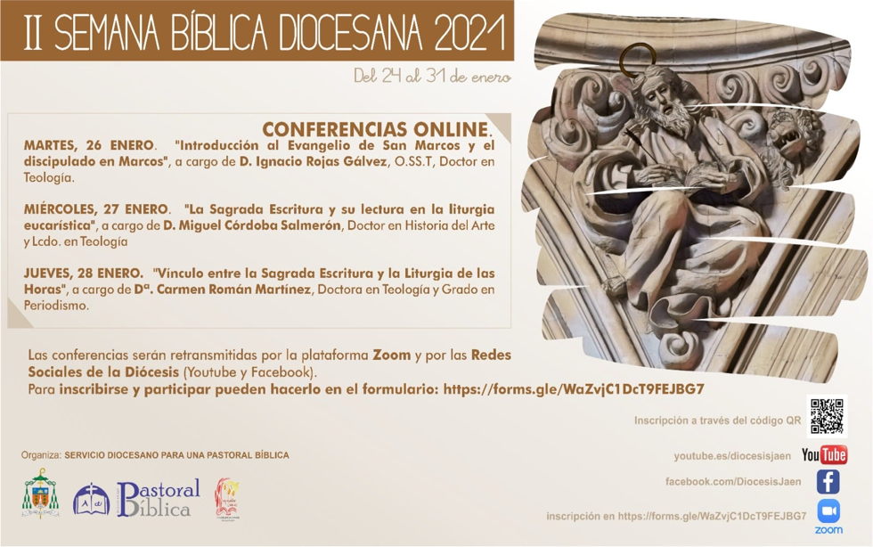 Por segundo año consecutivo, el Servicio diocesano para una Pastoral Bíblica, que dirige el sacerdote, D. Juan Pedro Moya Haro ha organizado la Semana Bíblica diocesana. Ésta se desarrollará entre los días 24 al 31 de enero, y como novedad este año contará con distintas ponencias que podrán seguirse de manera online.