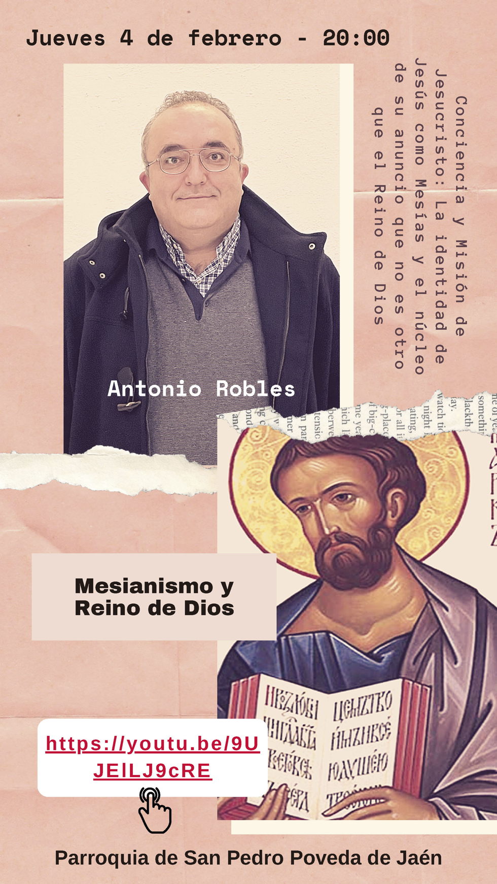 A estas charlas, que se celebrarán en la Parroquia de San Pedro Poveda de Jaén, solo podrán asistir presencialmente un pequeño grupo de personas, dado el límite del aforo (tres por cada parroquia de la ciudad). No obstante, todas las conferencias se podrán seguir a través del canal de YouTube del ISCCRR de la Universidad de San Dámaso (extensión de Jaén).
