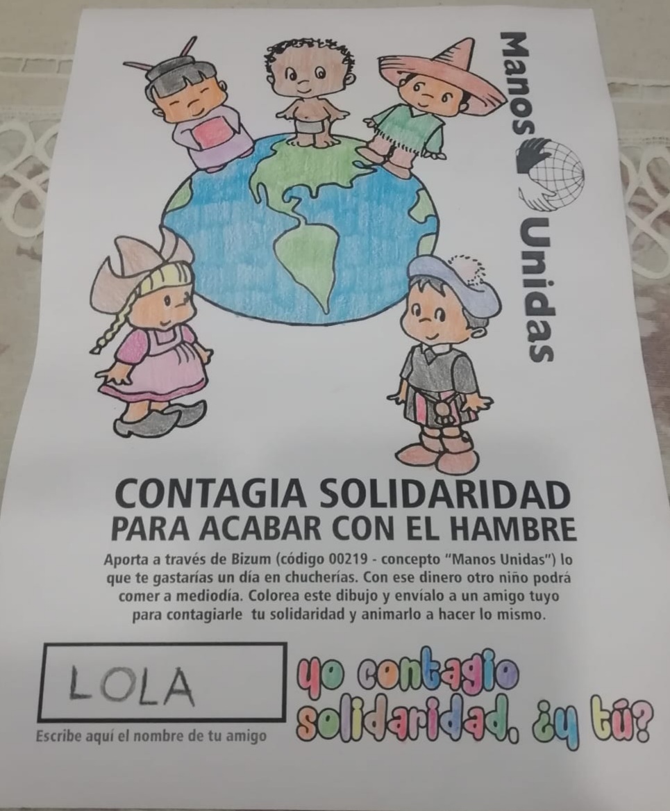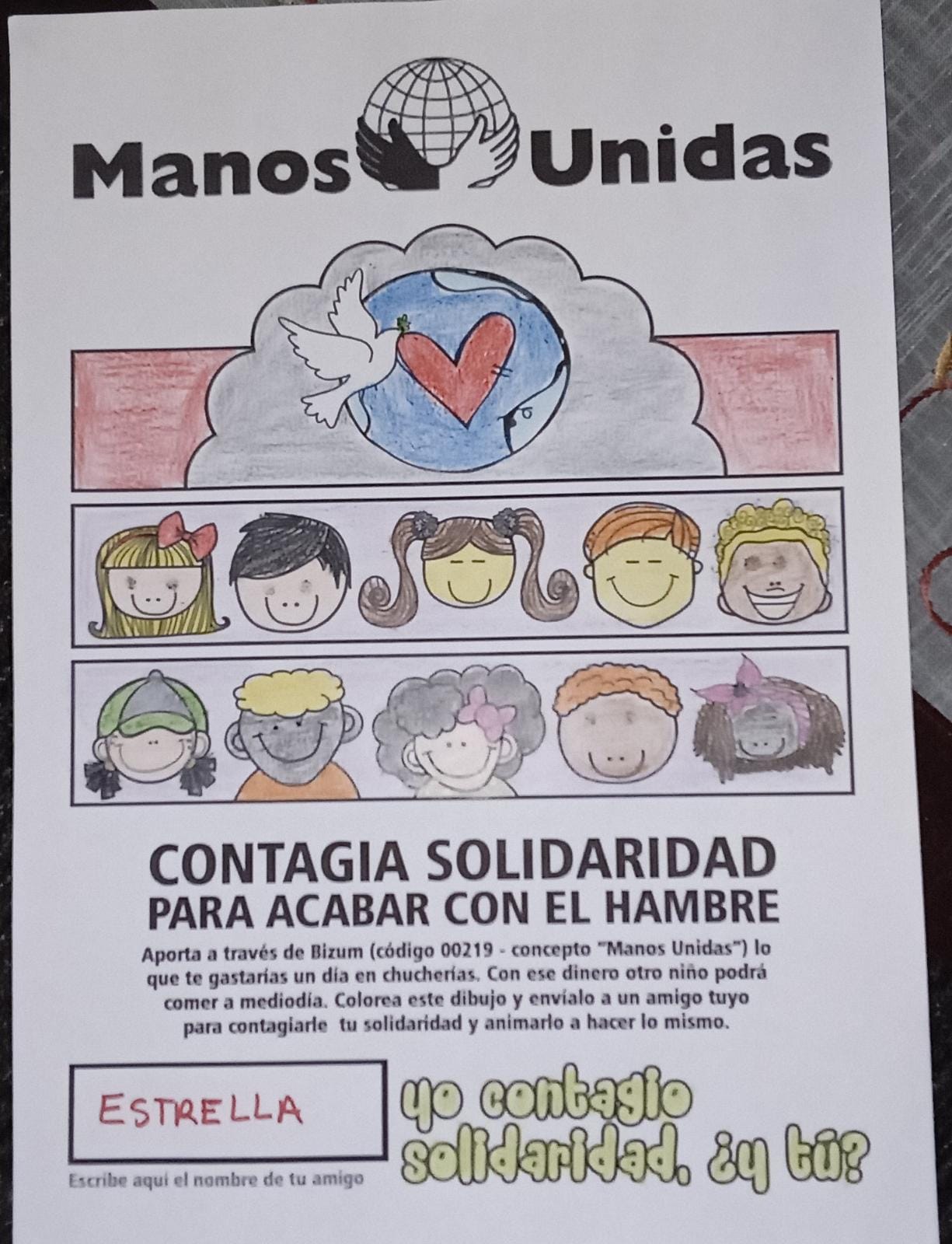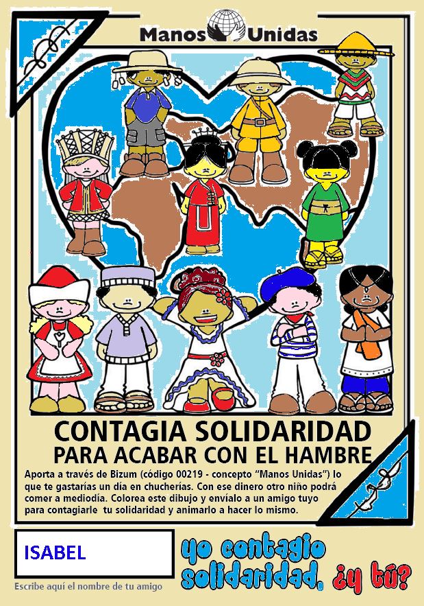 Los niños de catequesis han participado en la campaña de Manos Unidas contagiándose solidaridad unos a otros y a sus catequistas a través de los dibujos que se han enviado. Aquí tienes una muestra de los mismos, que nos han llegado también hasta aquí. Cuando pase el fin de semana diremos lo que se ha recaudado gracias a esta actividad, para aportarlo a la campaña.