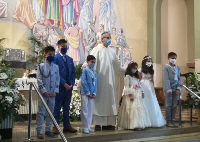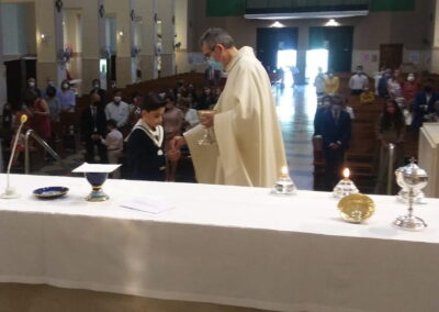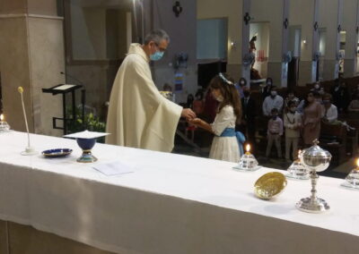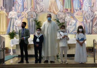 El pasado sábado, día 15 de mayo, y el domingo 16 de mayo, otros 10 niños de nuestra comunidad parroquial participaron por vez primera plenamente de la eucariatía. Los acompañaron algunos de sus familiares. Y, aunque, por razón de la pandemia, la asamblea reunida estuvo más reducida de lo que podía haber sido, las celebraciones resultaron entrañables.