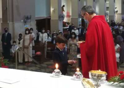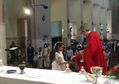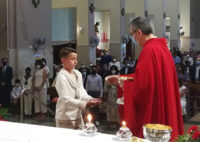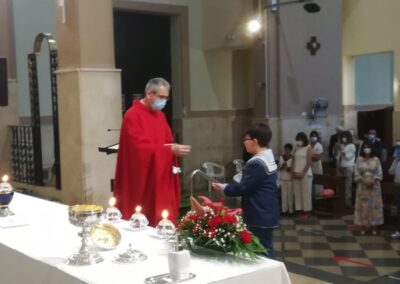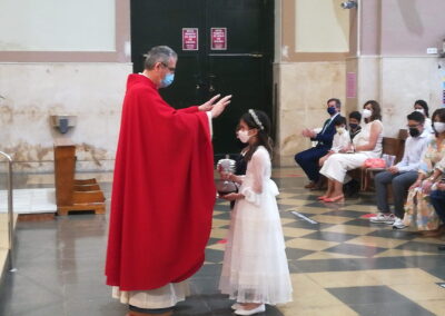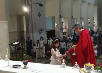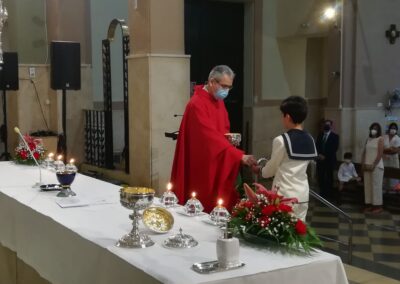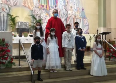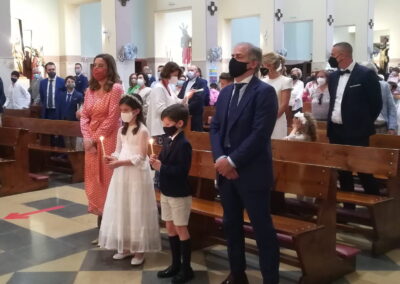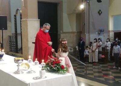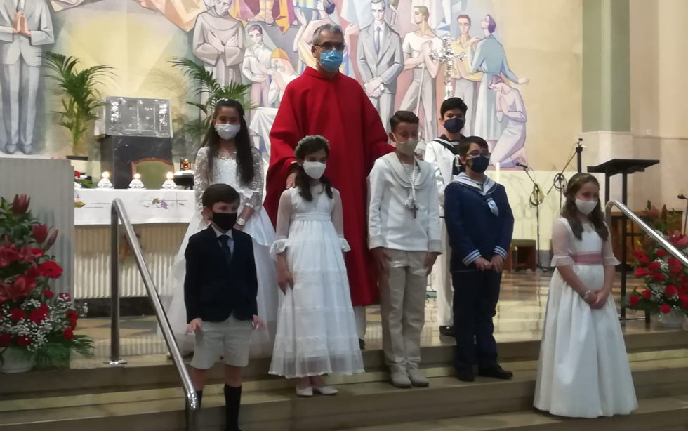 El pasado sábado, día 22 de mayo, otros 7 niños de nuestra comunidad parroquial participaron por vez primera plenamente de la eucariatía. Los acompañaron algunos de sus familiares. Y, aunque, por razón de la pandemia, la asamblea reunida estuvo más reducida de lo que podía haber sido, las celebraciones resultaron entrañables.