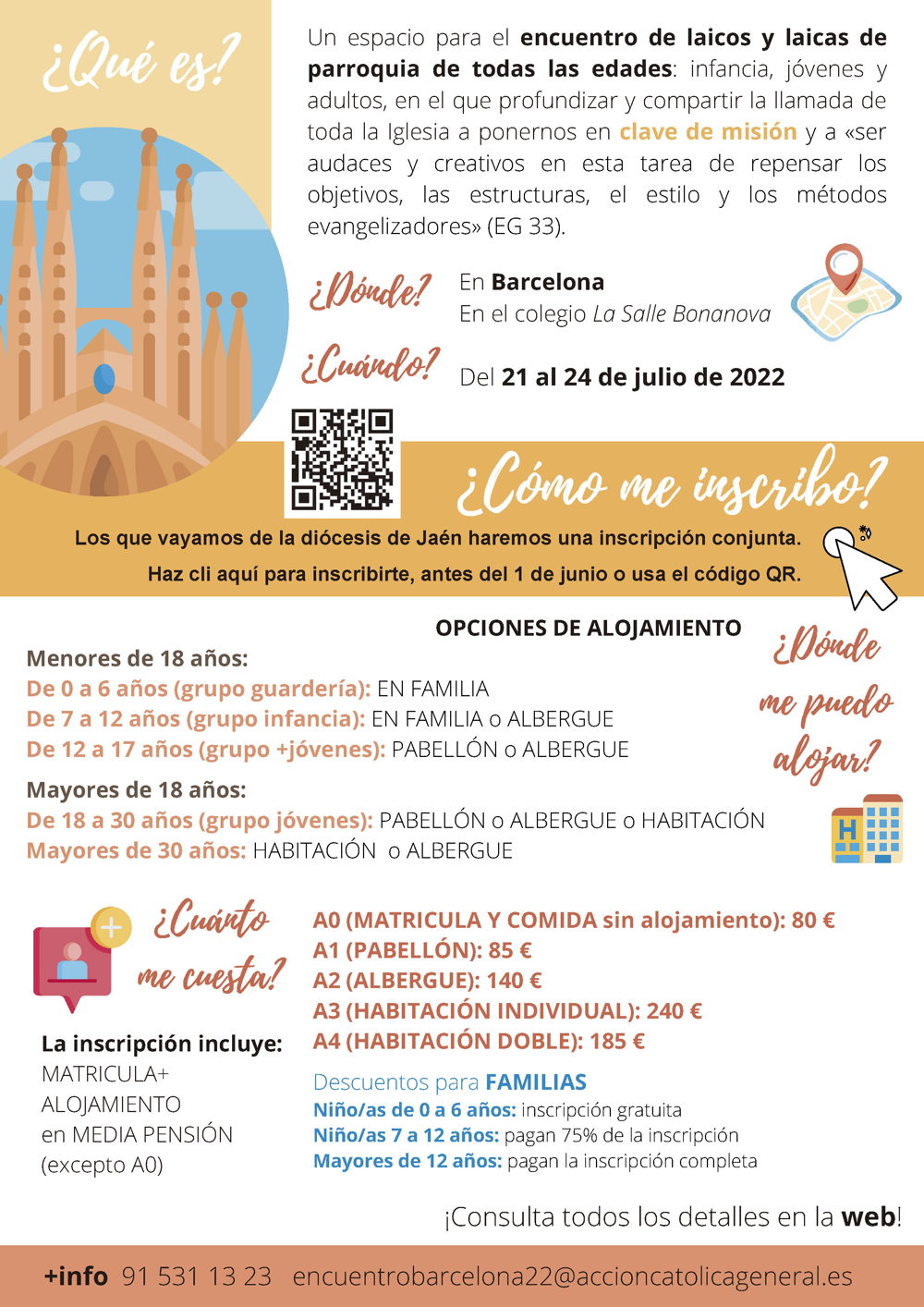 Os pedimos que hagáis la inscripción antes del 1 de junio, para poder organizar, si es necesario, el viaje común en autobús desde nuestras diócesis y enviar el listado completo de los participantes a la secretaría de Acción Católica General dentro del plazo concedido.