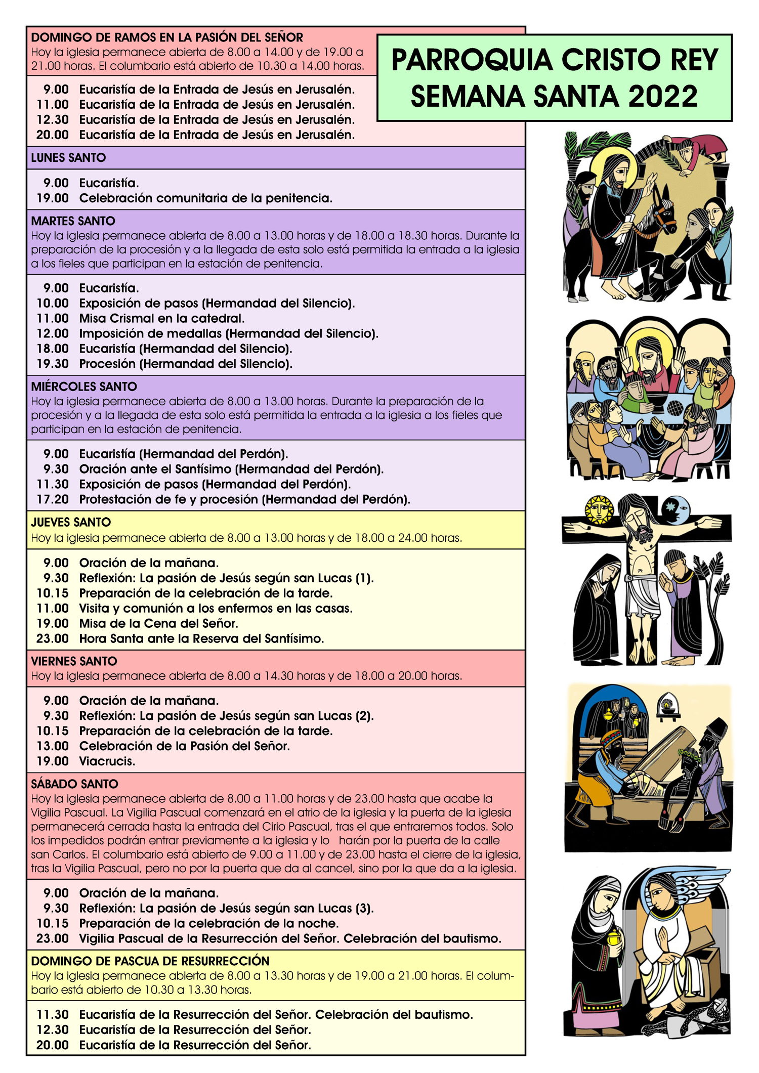 Programa de la Semana Santa 2022 Abr 8, 2022 | Espiritualidad, Liturgia | 0 Comentarios Aquí tienes el programa de la Semana Santa 2022 en la parroquia de Cristo Rey de Jaén. Haz clic aquí para descargarte el tríptico de la Semana Santa 2022 Enviar comentario Cancelar la respuestaTu dirección de correo electrónico no será publicada. Los campos obligatorios están marcados con *Comentario * Nombre * Correo electrónico * Web Guarda mi nombre, correo electrónico y web en este navegador para la próxima vez que comente. Δ