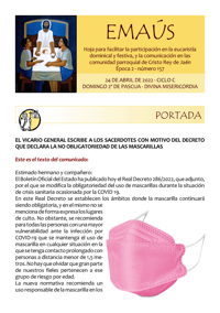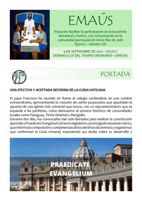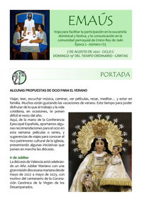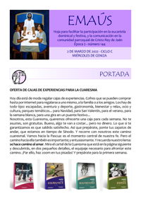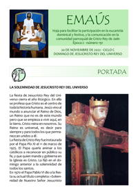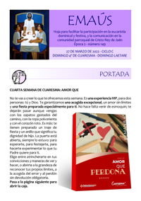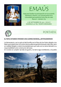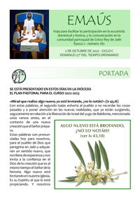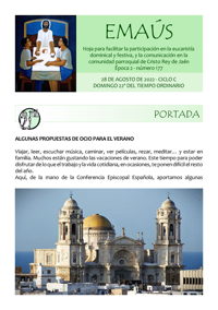 Emaús es una hoja pensada para favorecer la participación comunitaria en las celebraciones comunitarias y la comunicación en la parroquia.